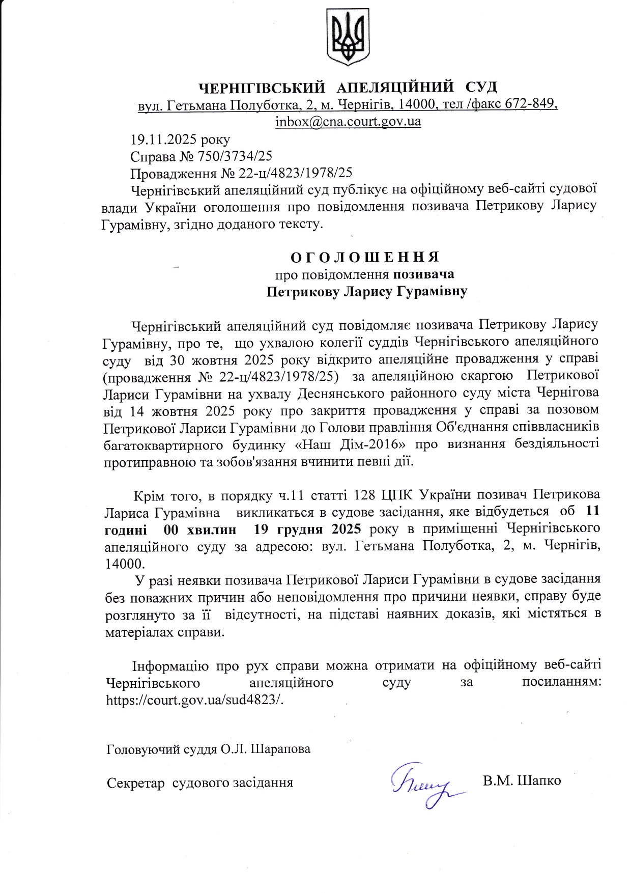 Оголошення про виклики до суду та повідомлення осіб з процесуальних питань