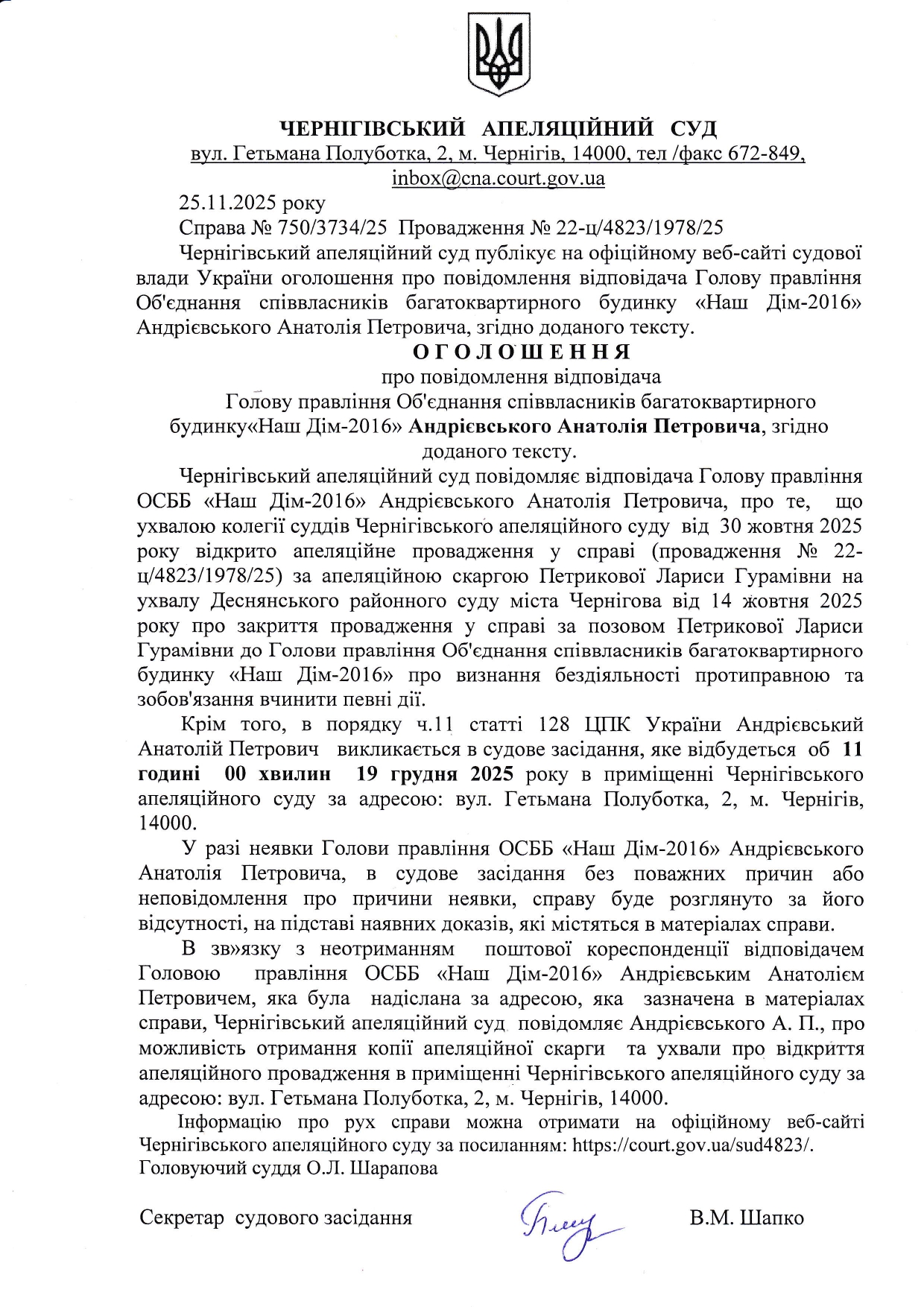 Оголошення про повідомлення відповідача Андрієвського А.П.