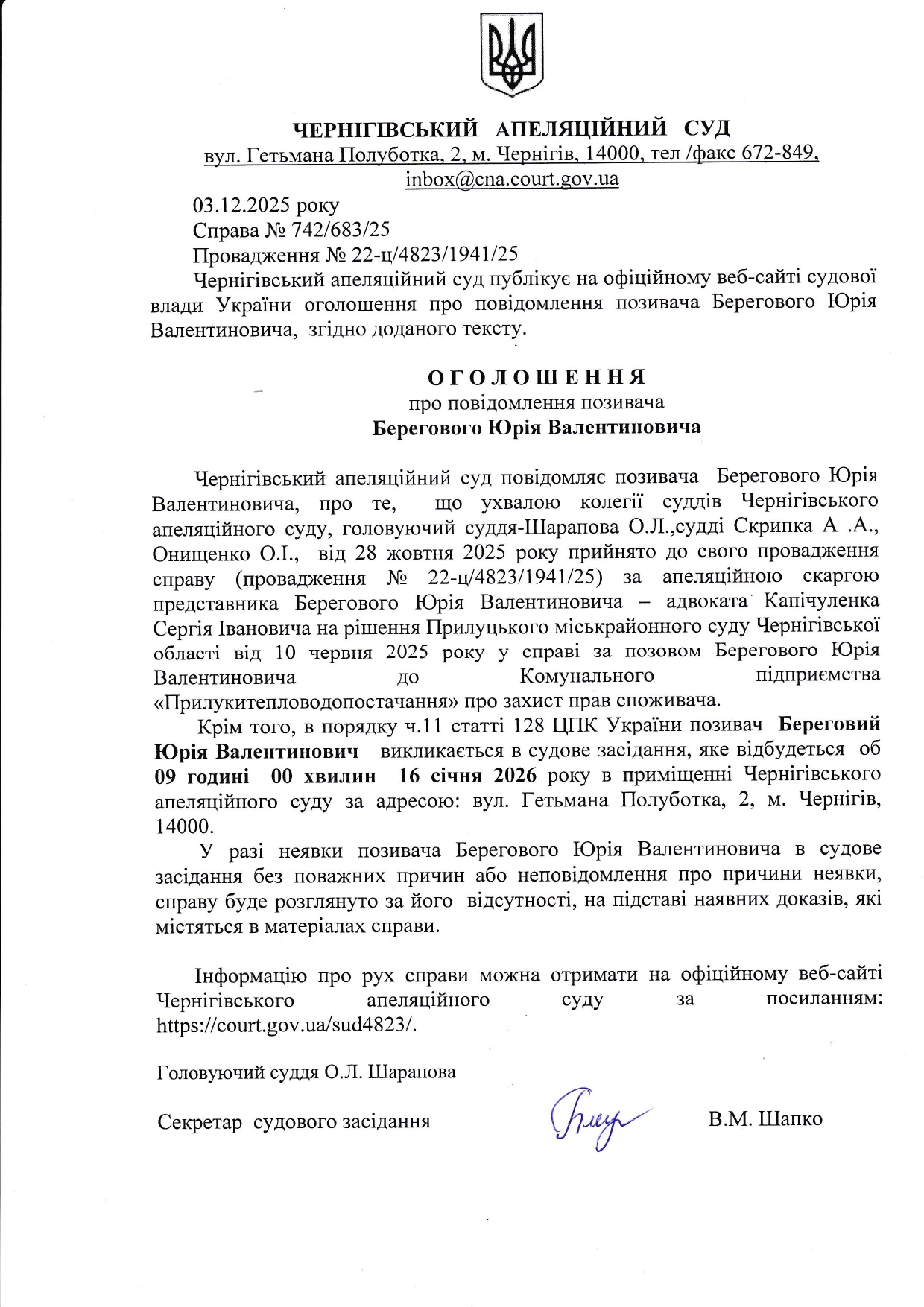 Оголошення про виклики до суду та повідомлення осіб з процесуальних питань