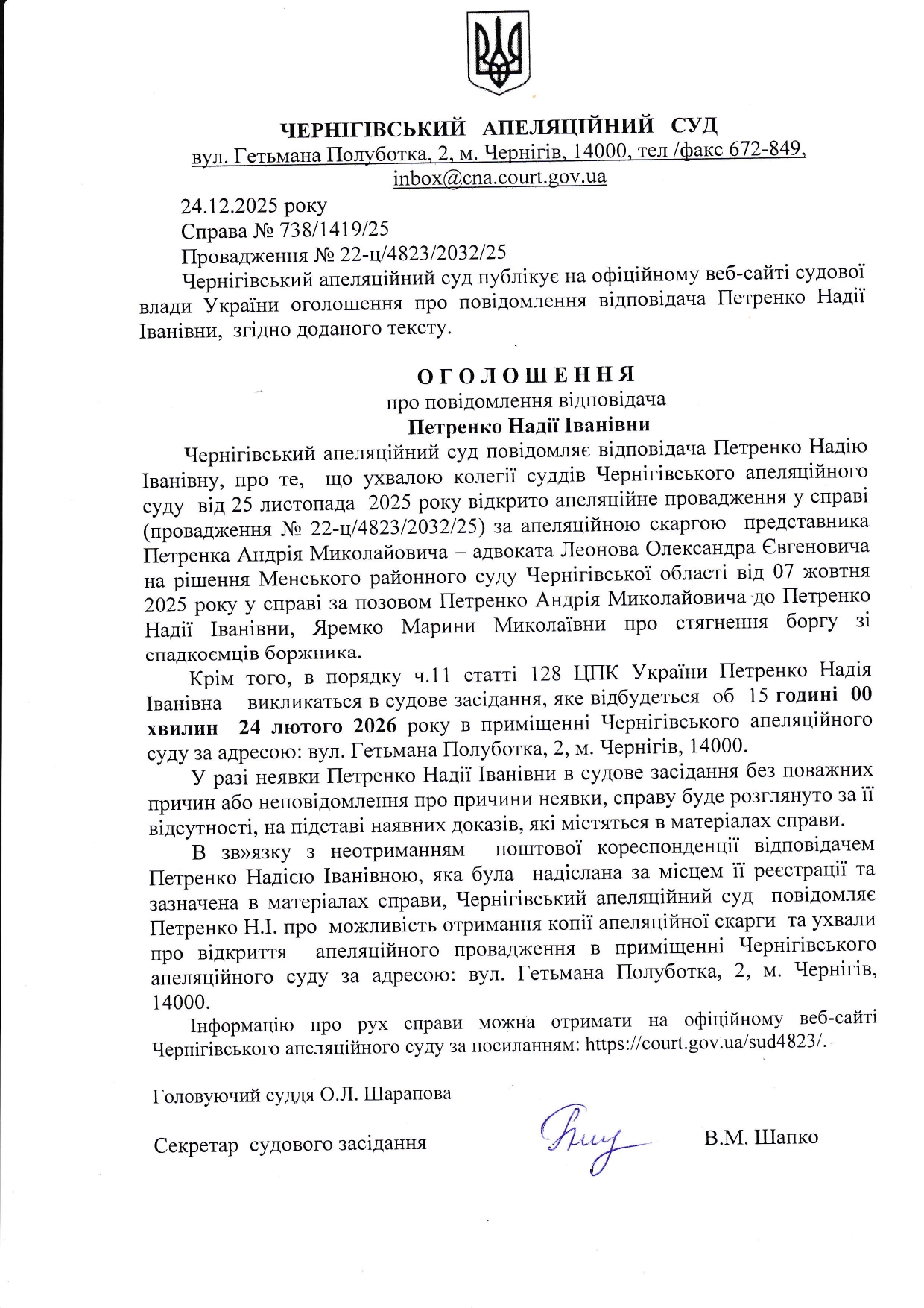 Оголошення про виклики до суду та повідомлення осіб з процесуальних питань