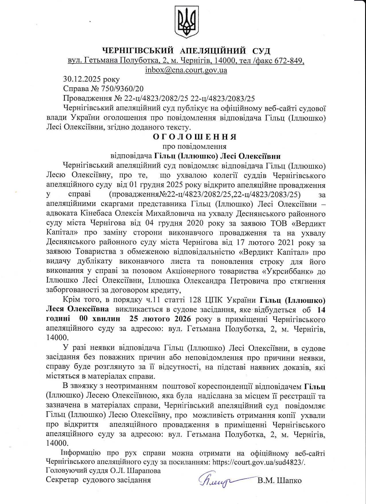 Оголошення про виклики до суду та повідомлення осіб з процесуальних питань