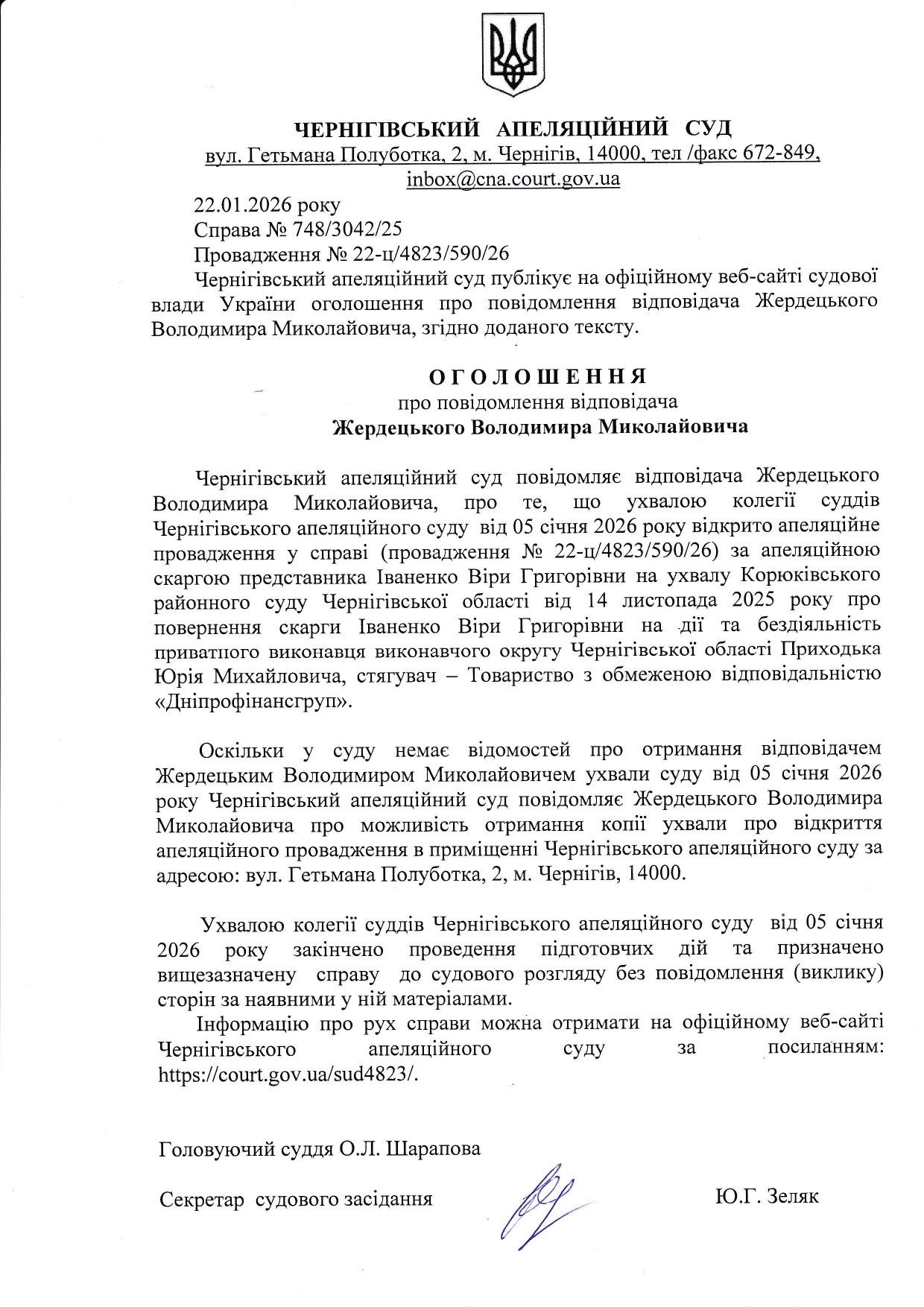Оголошення про повідомлення відповідача Жардецького В.М.