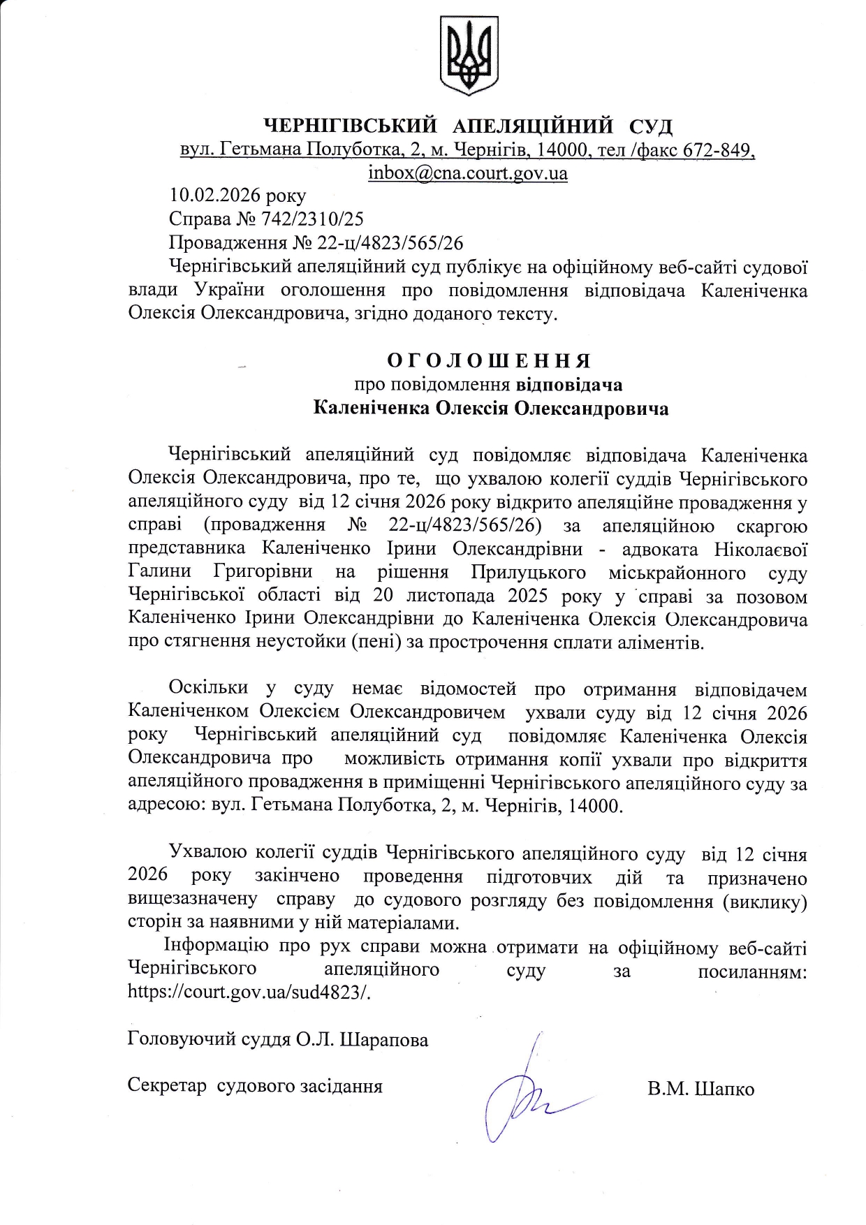 Оголошення про виклики до суду та повідомлення осіб з процесуальних питань