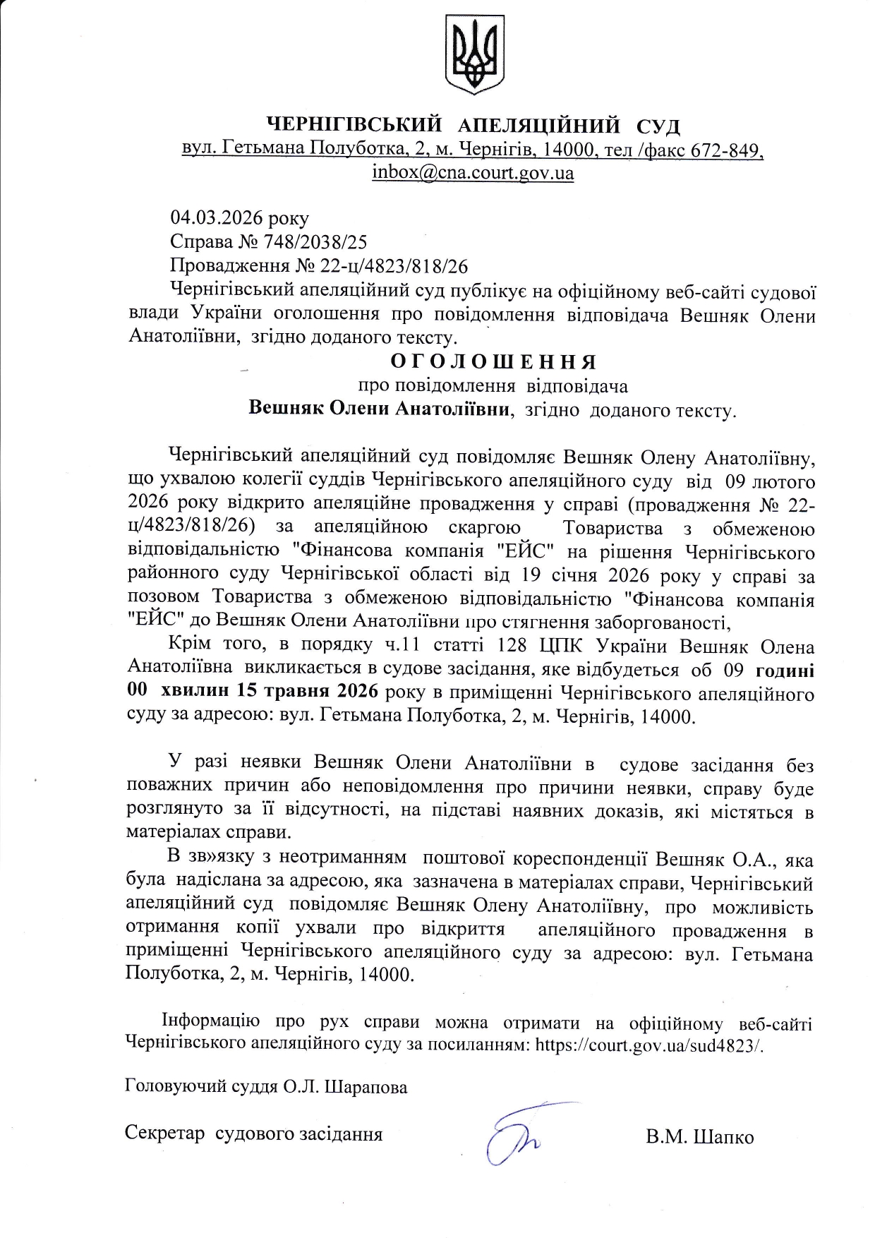 Оголошення про виклики до суду та повідомлення осіб з процесуальних питань