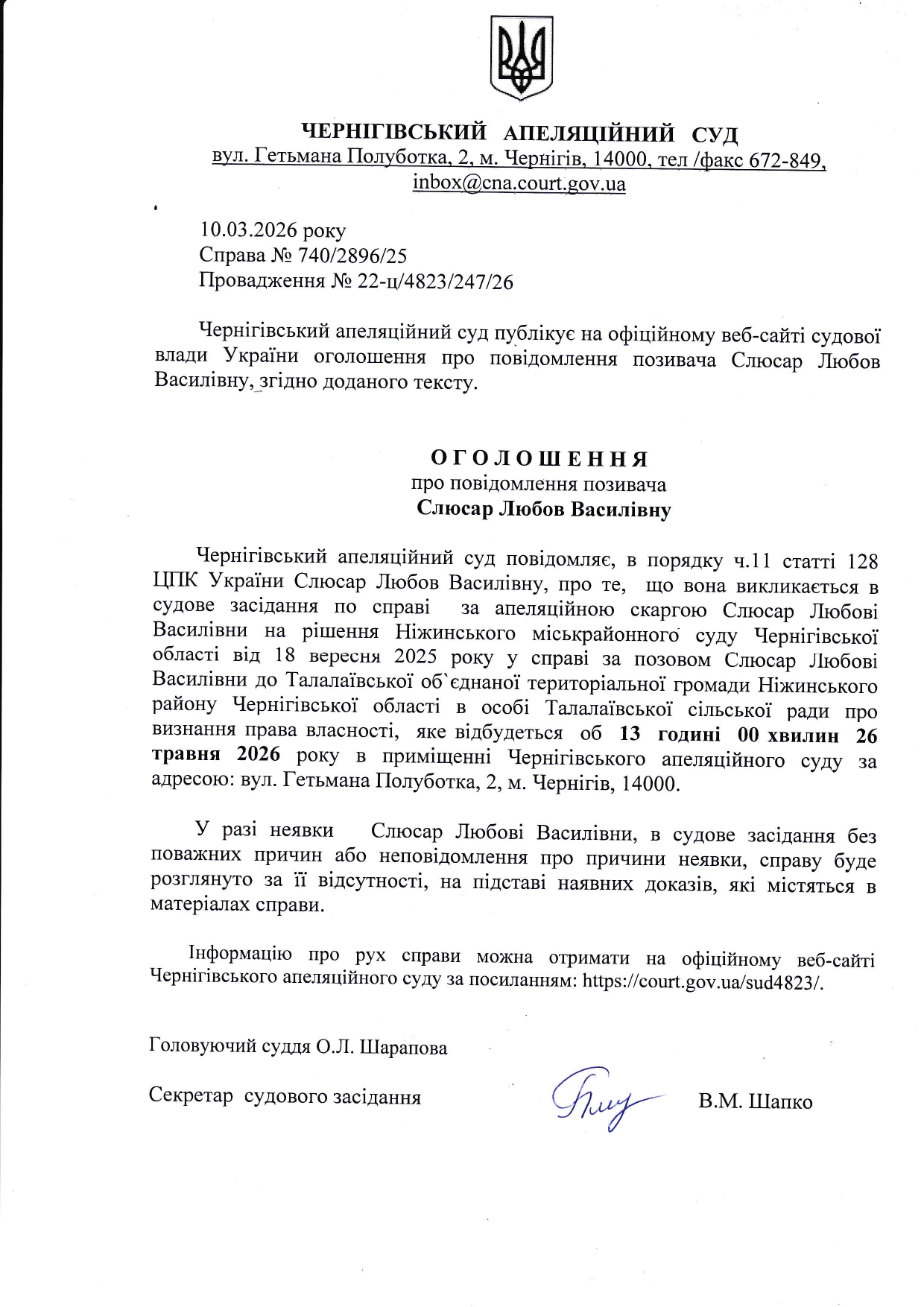Оголошення про виклики до суду та повідомлення осіб з процесуальних питань