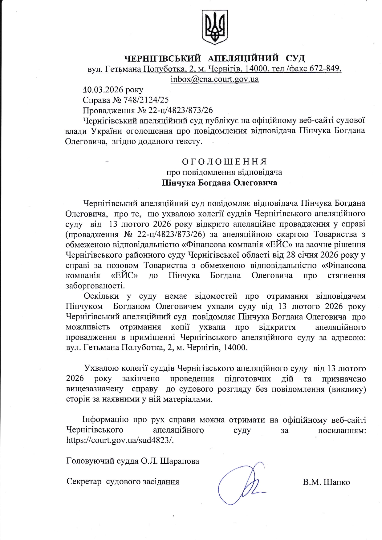 Оголошення про повідомлення відповідача Пінчука Б.О.
