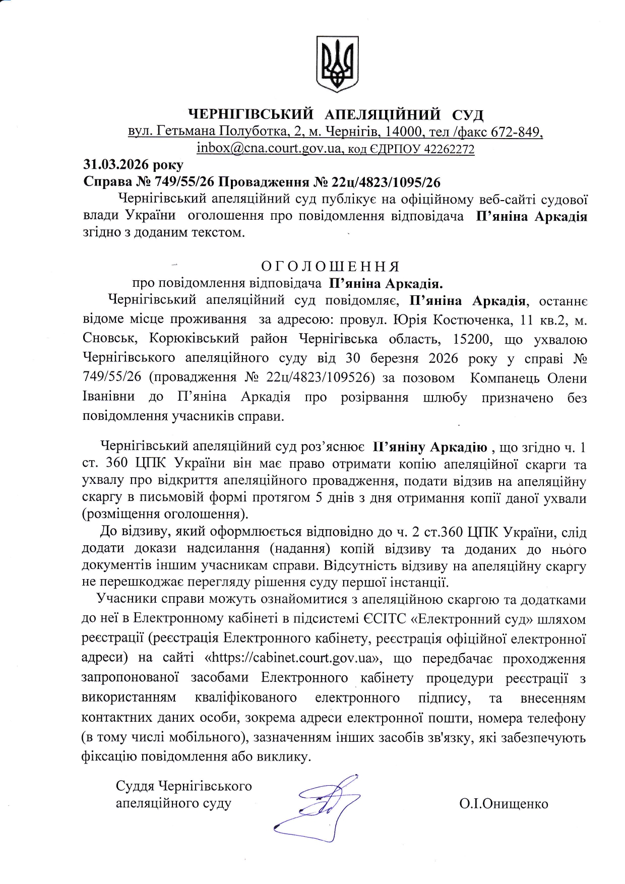 Оголошення про виклики до суду та повідомлення осіб з процесуальних питань